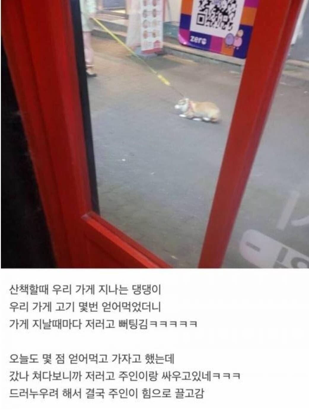 고기집 앞에서 주인과 싸운 강아지 ㅋㅋㅋㅋ