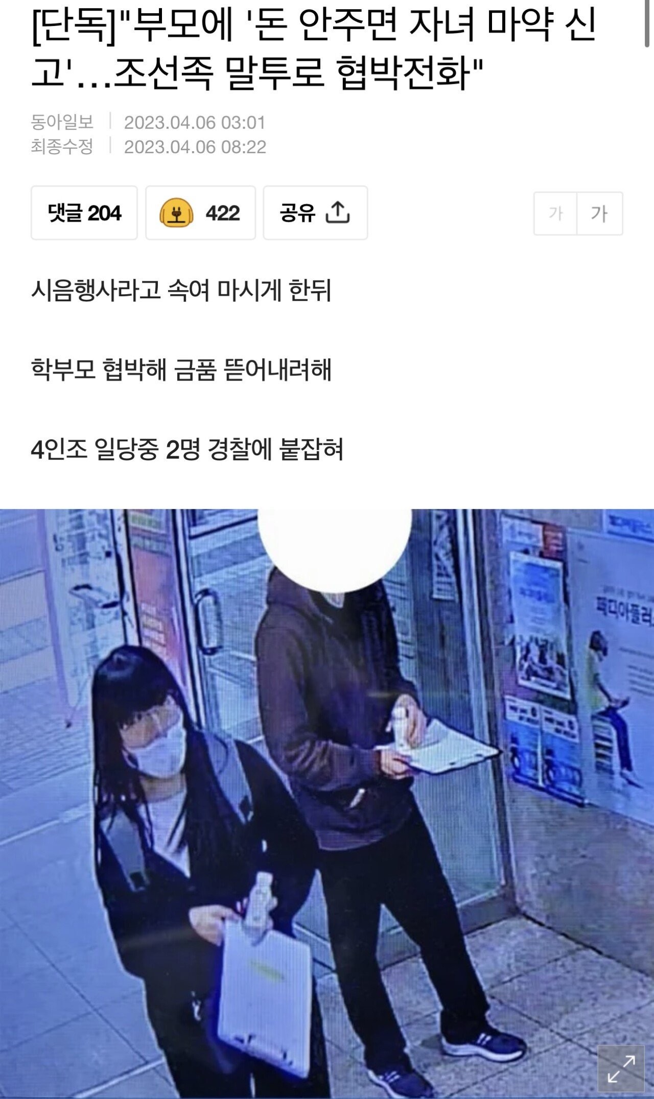 돈 안주면 자녀 마약 신고'…조선족 말투로 협박전화
