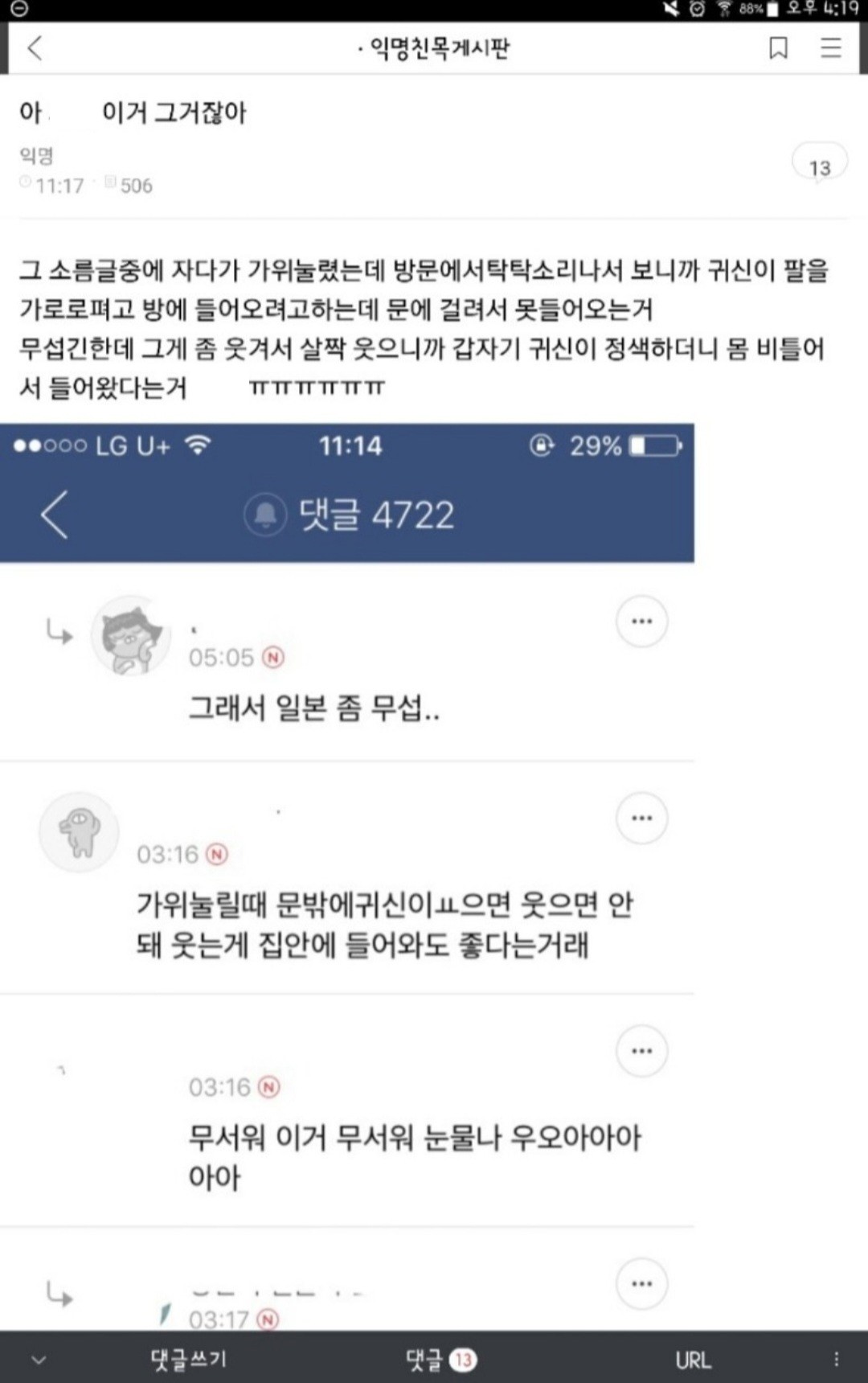 공포) 가위 눌렸을 때 웃으면 안 돼 Home자유글유머 > 153717 쿠아 쿠아님의 홈 전체게시물 아이디로 검색 쿠아님의 홈 전체게시물 아이디로 검색 2023.04.21 01:00 1,053 0 11 LV.1 29% 신고 목록 게시글 신고 안내 아래 내용중 해당하는 내용이 있을경우 아래 게시글신고 버튼을 클릭하시고 사유를 작성해주시면 빠른시간 안에 삭제및 필요조치하여 드리겠습니다. 로그인후 이용이 가능합니다. 그리고 답변은 메뉴 아이러브강원 > 1:1문의에서 확인이 가능합니다. 자신 또는 제3자를 비방하거나 중상 모략으로 명예를 손상시키는 내용 범죄행위와 관련이 있다고 판단되는 내용 다른 회원 또는 제3자의 저작권 등 기타 권리를 침해하는 내용 타인의 개인정보, 사생활을 침해하거나 명예를 손상시키는 경우 자신의 글을 타인이 도용한 경우 위의 내용 이외에 기타사항 본문 공포) 가위 눌렸을 때 웃으면 안 돼눈뜨자마자 들어온경우는 예의가 없는 귀신이였내 11 로그인 후 추천을 하실 수 있습니다. 쿠아 님의 최신글 쿠아 님의 최신댓글 최신글이 없습니다. 최신글이 없습니다. 쿠아 님의 최신글 쿠아 님의 최신댓글 최신글이 없습니다. 최신글이 없습니다. SNS 댓글목록 0 등록된 댓글이 없습니다. × 게시물 신고하기 신고사유 이 게시물을 신고하시겠습니까? 신고사유를 선택해 주세요. 광고성 음란성 비방성 혐오성 기타 신고하기 전체 261 건 - 9 페이지 Home자유글유머 > 153717 번호 댓글 제목 글작성자 날짜 뷰 추천 141 댓글0개 카카오프렌즈 춘식이 쿠아 쿠아님의 홈 전체게시물 아이디로 검색 쿠아님의 홈 전체게시물 아이디로 검색 952 10 2023.06.07 쿠아 쿠아님의 홈 전체게시물 아이디로 검색 쿠아님의 홈 전체게시물 아이디로 검색 2023.06.07 952 10 140 댓글0개 헛수고 쿠아 쿠아님의 홈 전체게시물 아이디로 검색 쿠아님의 홈 전체게시물 아이디로 검색 903 7 2023.06.04 쿠아 쿠아님의 홈 전체게시물 아이디로 검색 쿠아님의 홈 전체게시물 아이디로 검색 2023.06.04 903 7 139 댓글0개 토트넘 로또 예언 쿠아 쿠아님의 홈 전체게시물 아이디로 검색 쿠아님의 홈 전체게시물 아이디로 검색 1,026 34 2023.05.09 쿠아 쿠아님의 홈 전체게시물 아이디로 검색 쿠아님의 홈 전체게시물 아이디로 검색 2023.05.09 1,026 34 138 댓글0개 여자친구와 결혼식 갔을때 X되는 상황 쿠아 쿠아님의 홈 전체게시물 아이디로 검색 쿠아님의 홈 전체게시물 아이디로 검색 1,033 6 2023.05.09 쿠아 쿠아님의 홈 전체게시물 아이디로 검색 쿠아님의 홈 전체게시물 아이디로 검색 2023.05.09 1,033 6 137 댓글0개 죽다 살아났다는 개콘출신 개그맨 쿠아 쿠아님의 홈 전체게시물 아이디로 검색 쿠아님의 홈 전체게시물 아이디로 검색 999 6 2023.05.04 쿠아 쿠아님의 홈 전체게시물 아이디로 검색 쿠아님의 홈 전체게시물 아이디로 검색 2023.05.04 999 6 열람 댓글0개 공포) 가위 눌렸을 때 웃으면 안 돼 쿠아 쿠아님의 홈 전체게시물 아이디로 검색 쿠아님의 홈 전체게시물 아이디로 검색 1,054 11 2023.04.21 쿠아 쿠아님의 홈 전체게시물 아이디로 검색 쿠아님의 홈 전체게시물 아이디로 검색 2023.04.21 1,054 11 135 댓글0개 아이스크림과 싸워 패배함 쿠아 쿠아님의 홈 전체게시물 아이디로 검색 쿠아님의 홈 전체게시물 아이디로 검색 978 11 2023.04.21 쿠아 쿠아님의 홈 전체게시물 아이디로 검색 쿠아님의 홈 전체게시물 아이디로 검색 2023.04.21 978 11 134 댓글0개 로봇과 즐거운 놀이.gif 쿠아 쿠아님의 홈 전체게시물 아이디로 검색 쿠아님의 홈 전체게시물 아이디로 검색 1,053 7 2023.04.11 쿠아 쿠아님의 홈 전체게시물 아이디로 검색 쿠아님의 홈 전체게시물 아이디로 검색 2023.04.11 1,053 7 133 댓글0개 스타벅스 직원피셜 숨은 숙취해소 음료 쿠아 쿠아님의 홈 전체게시물 아이디로 검색 쿠아님의 홈 전체게시물 아이디로 검색 1,018 5 2023.04.06 쿠아 쿠아님의 홈 전체게시물 아이디로 검색 쿠아님의 홈 전체게시물 아이디로 검색 2023.04.06 1,018 5 132 댓글0개 생리 전 하루동안의 식욕 쿠아 쿠아님의 홈 전체게시물 아이디로 검색 쿠아님의 홈 전체게시물 아이디로 검색 1,049 4 2023.04.02 쿠아 쿠아님의 홈 전체게시물 아이디로 검색 쿠아님의 홈 전체게시물 아이디로 검색 2023.04.02 1,049 4 131 댓글0개 신입이 흰우유 1L짜리 2개 사왔다 쿠아 쿠아님의 홈 전체게시물 아이디로 검색 쿠아님의 홈 전체게시물 아이디로 검색 990 9 2023.03.31 쿠아 쿠아님의 홈 전체게시물 아이디로 검색 쿠아님의 홈 전체게시물 아이디로 검색 2023.03.31 990 9 130 댓글0개 말전거 쿠아 쿠아님의 홈 전체게시물 아이디로 검색 쿠아님의 홈 전체게시물 아이디로 검색 1,066 9 2023.03.29 쿠아 쿠아님의 홈 전체게시물 아이디로 검색 쿠아님의 홈 전체게시물 아이디로 검색 2023.03.29 1,066 9 129 댓글0개 영화같은 사고장면 쿠아 쿠아님의 홈 전체게시물 아이디로 검색 쿠아님의 홈 전체게시물 아이디로 검색 959 4 2023.03.28 쿠아 쿠아님의 홈 전체게시물 아이디로 검색 쿠아님의 홈 전체게시물 아이디로 검색 2023.03.28 959 4 128 댓글0개 쓰레기로 12억 버는 법 쿠아 쿠아님의 홈 전체게시물 아이디로 검색 쿠아님의 홈 전체게시물 아이디로 검색 974 10 2023.03.22 쿠아 쿠아님의 홈 전체게시물 아이디