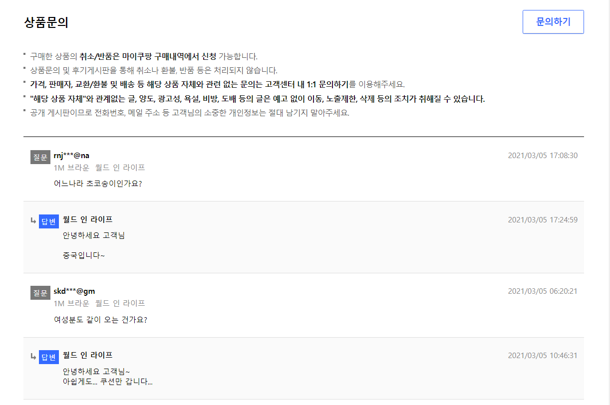 - 로그인후 이용이 가능합니다. 그리고 답변은 메뉴 아이러브강원 > 1:1문의에서 확인이 가능합니다.