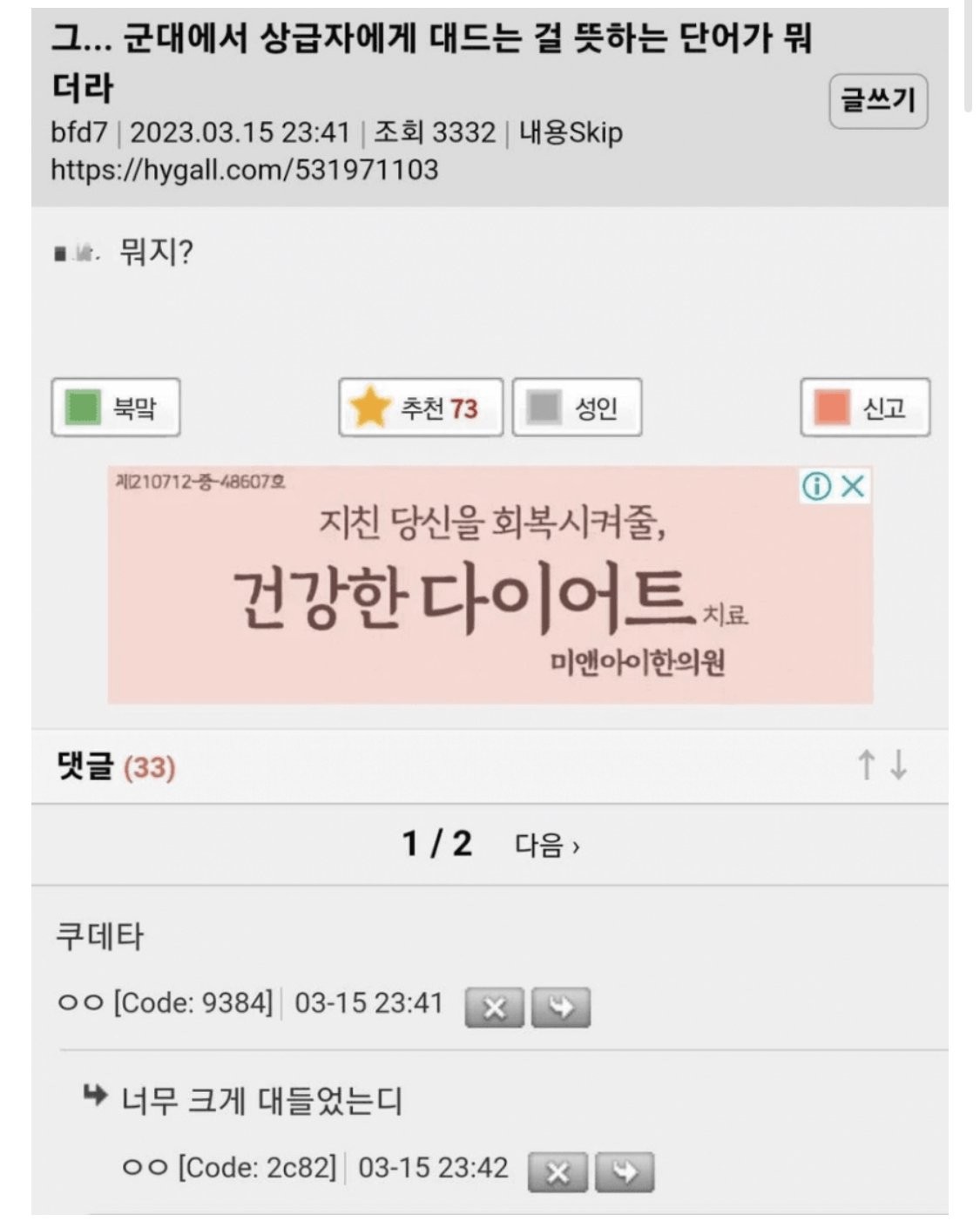 군대에서 상급자에게 대드는 걸 뭐라고 하더라