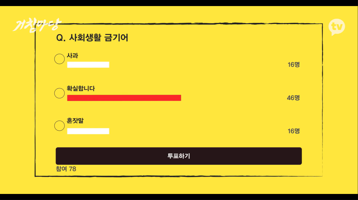 거침마당이 인스타 라이브로 투표 진행하다 오픈톡으로 투표하는 방식으로 바뀜
