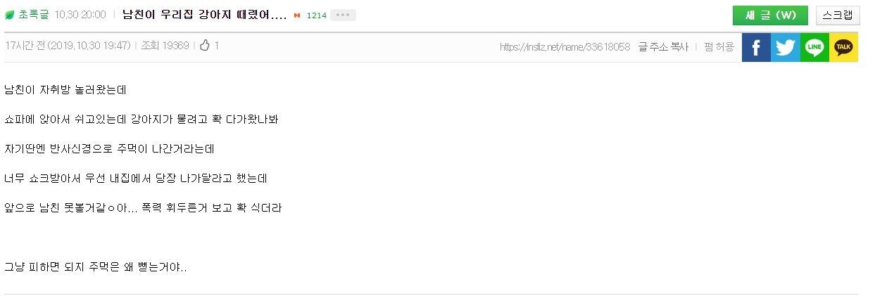 남친이 우리집 강아지 때렸어..