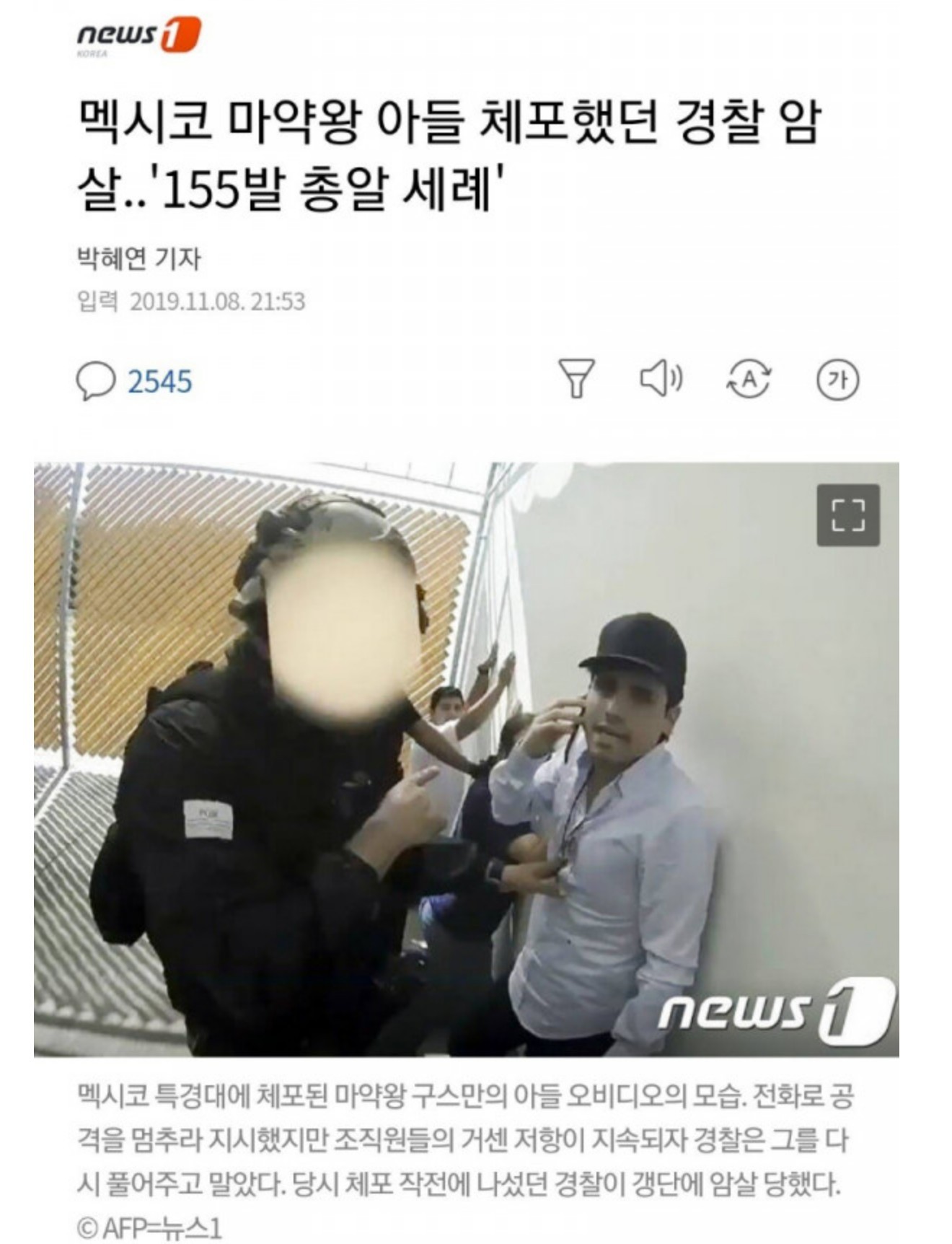 155발 총에 맞은 멕시코 경찰
