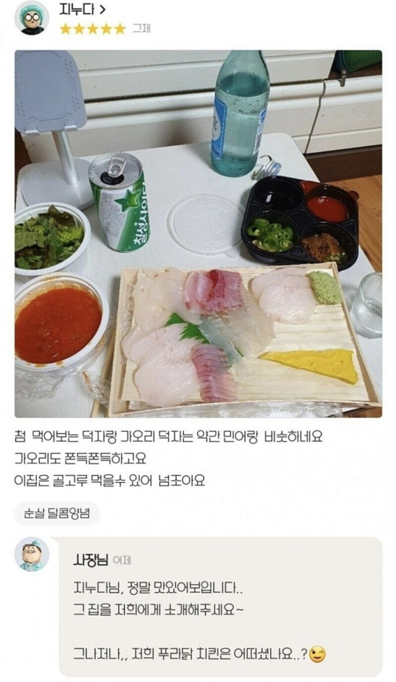 사장님도 맛있어보인다고 인정한 배민 리뷰