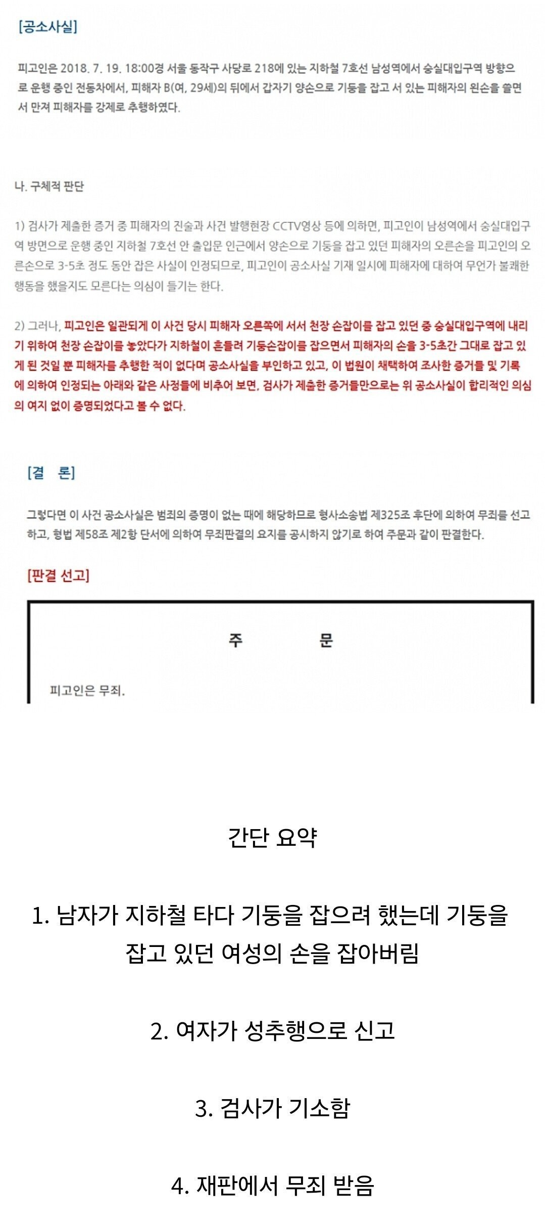 지하철이 흔들려서 성추행으로 신고당했던 남자