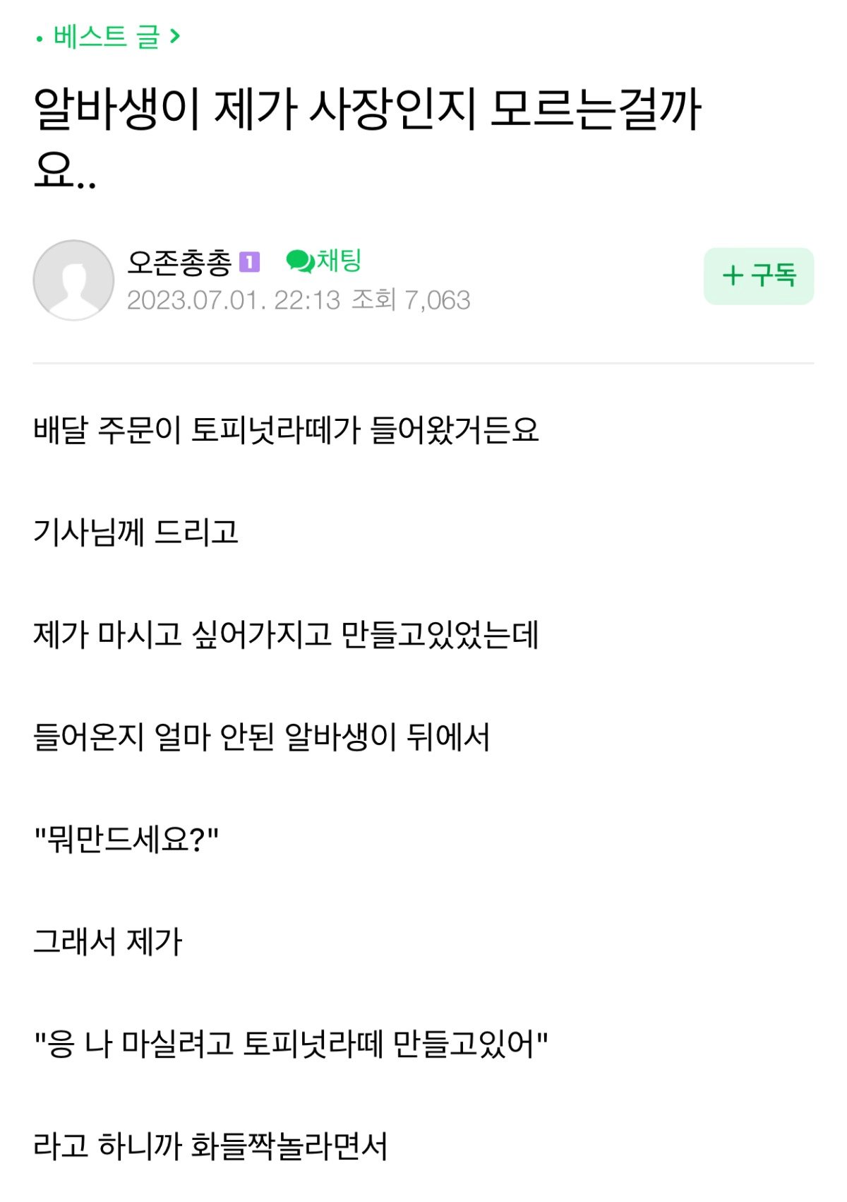 Q&A - 일부러 면박 줄려고 그런말 한거 같은데말하는게 참 그렇네요.걸레라니 인성이 참똥 밟았따고 생각하시고다음에 쳐다보면 아예 무시하세요.저런류 인간들은 무시가 답입니다.2025-10-09