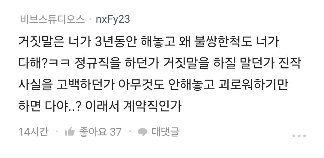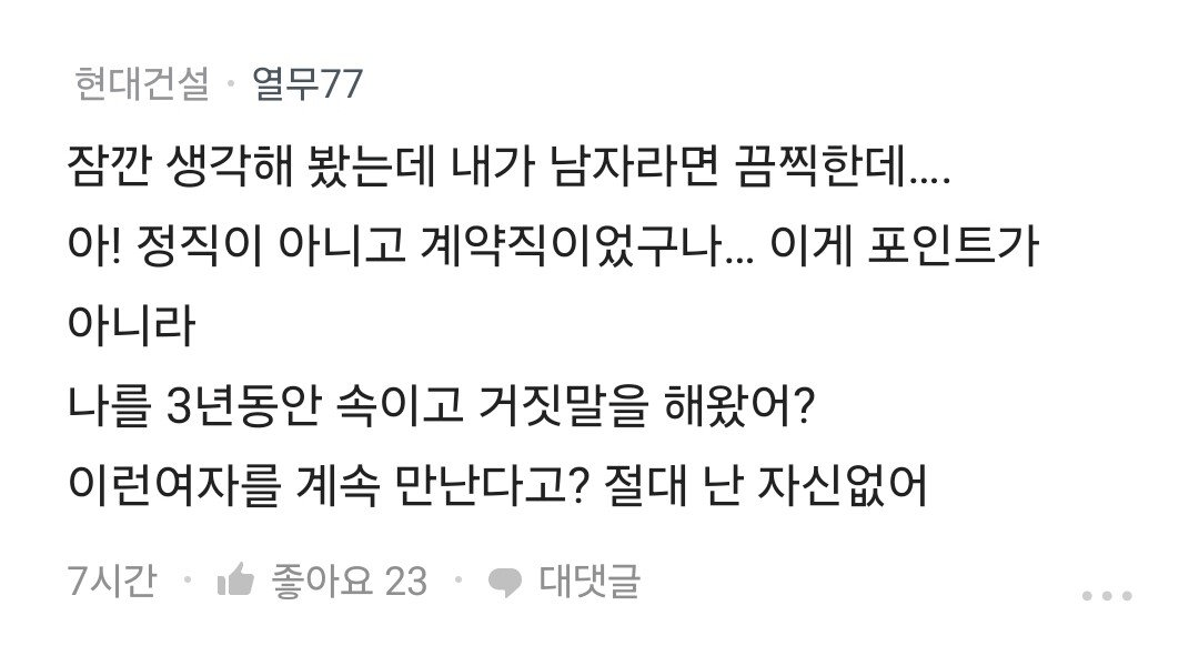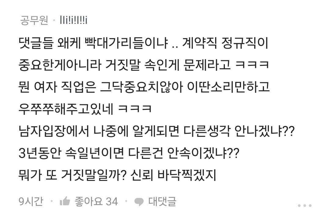 3년간 남친에게 계약직인걸 숨긴 블라녀