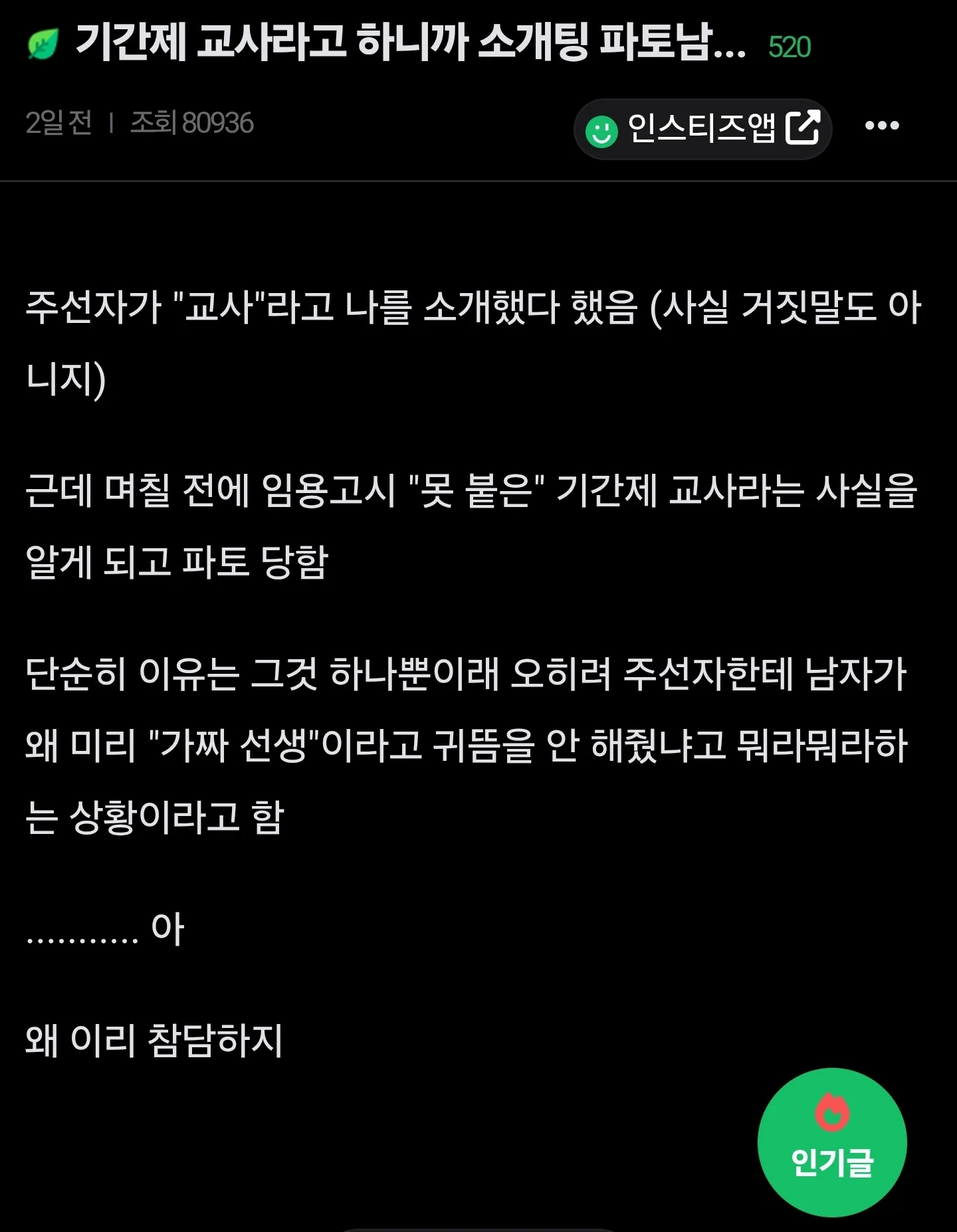 기간제 교사라고 했더니 소개팅 파토남