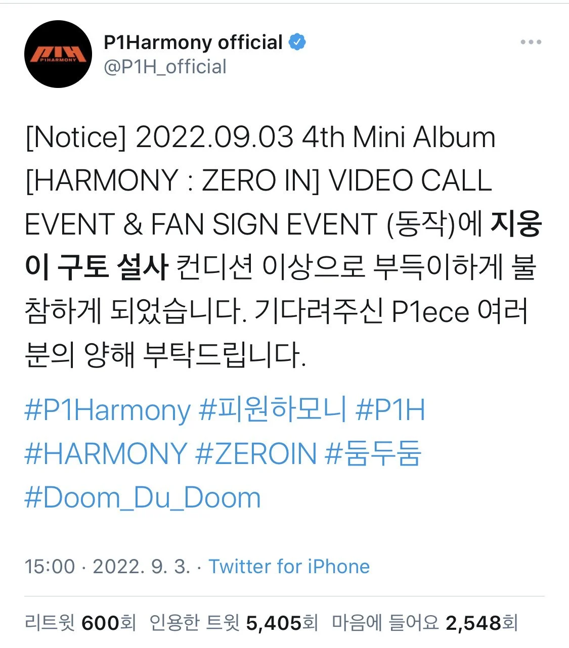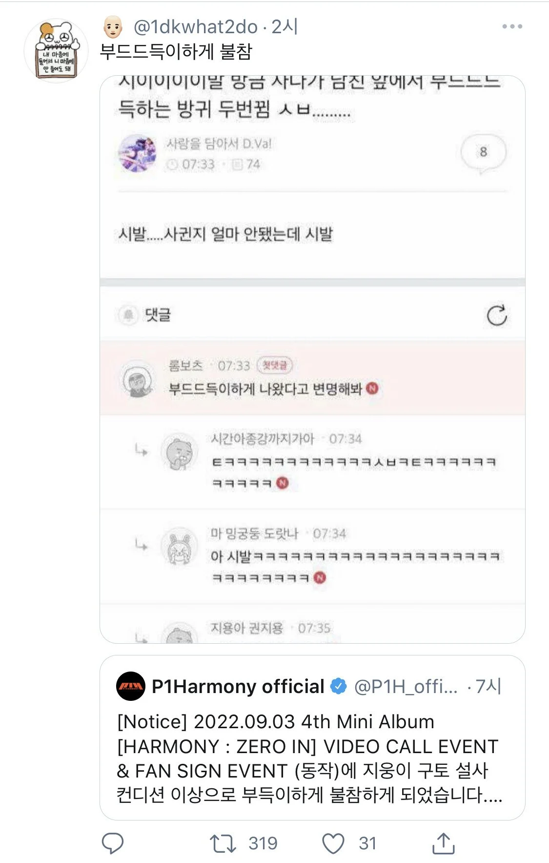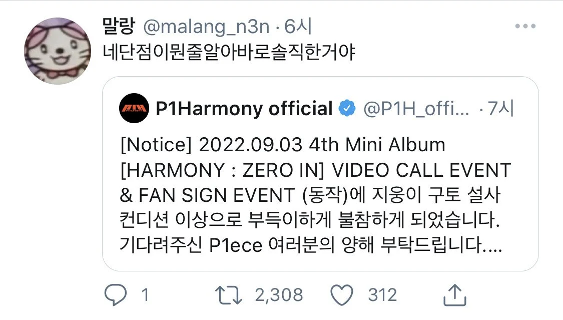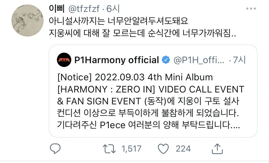 아이돌의 불참 공지