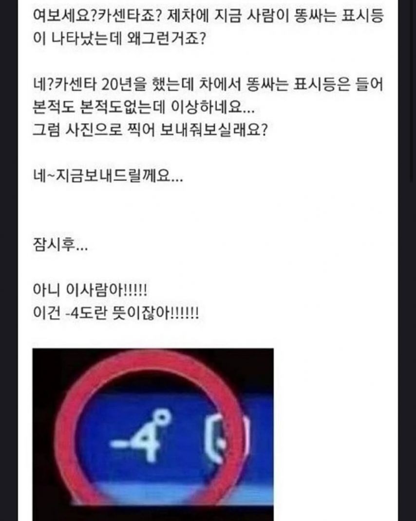 제 차에 똥싸는 사람 표시등이 들어왔어요