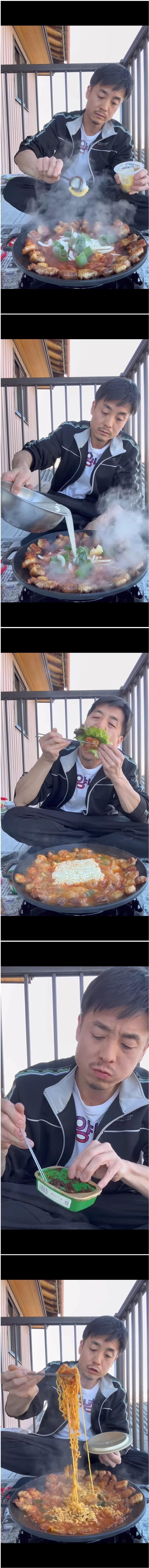 베란다에서 풀코스로 한식 먹는 일본 아재