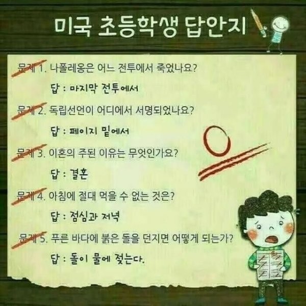 미국 초등학생의 답안지
