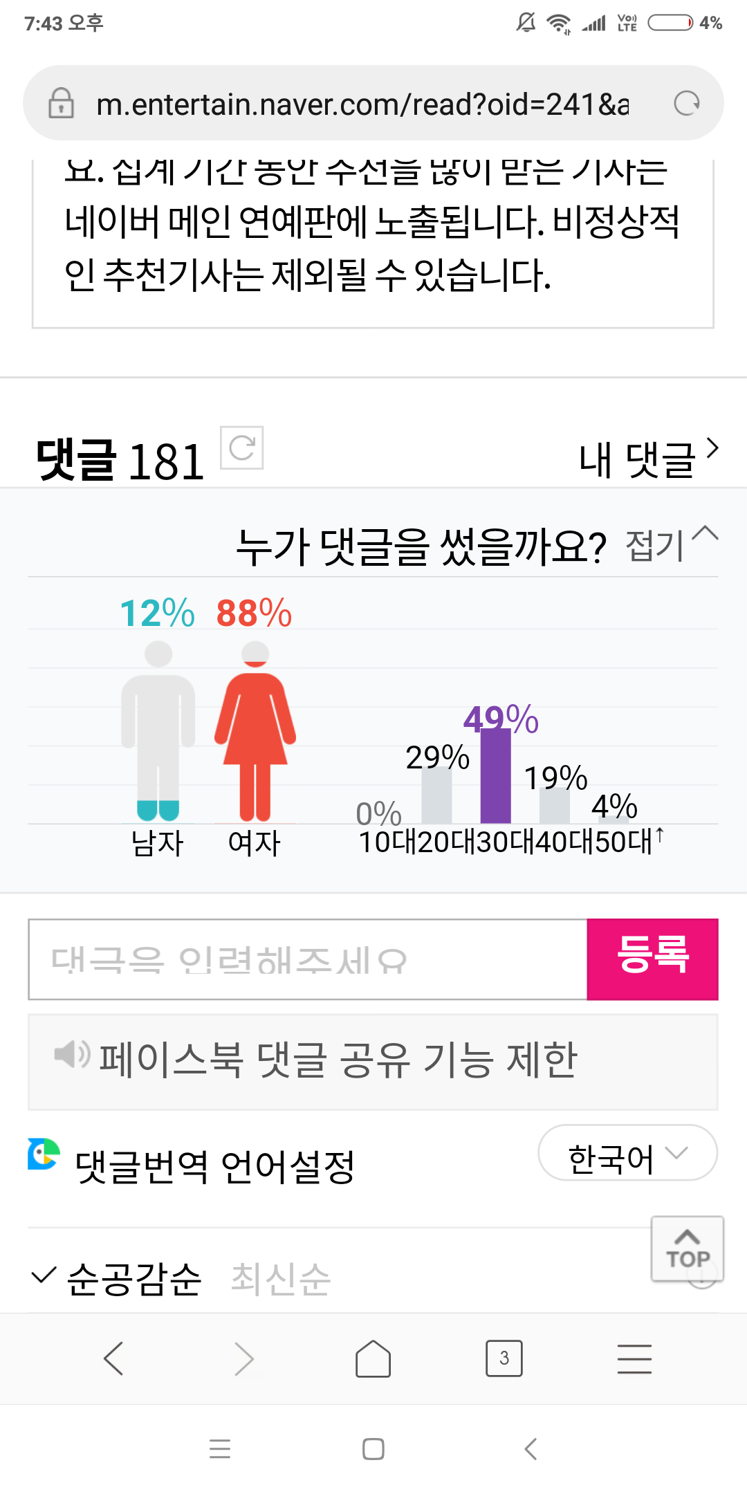 시사 관련 기사는 남:여=80:20 이더만 이런건 여자가 많네