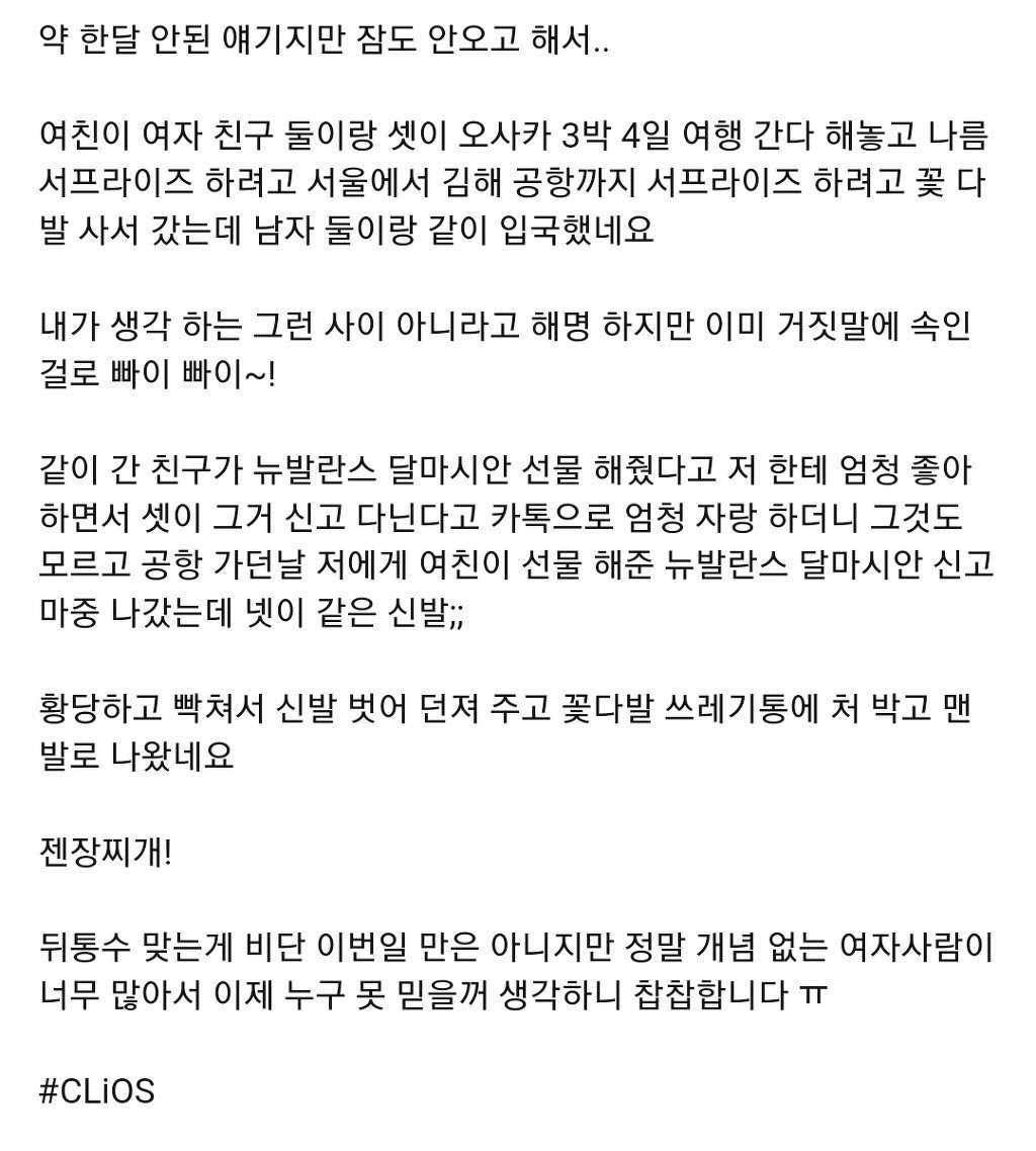 여친이 다른 남자들이랑 여행 갔다 왔어요