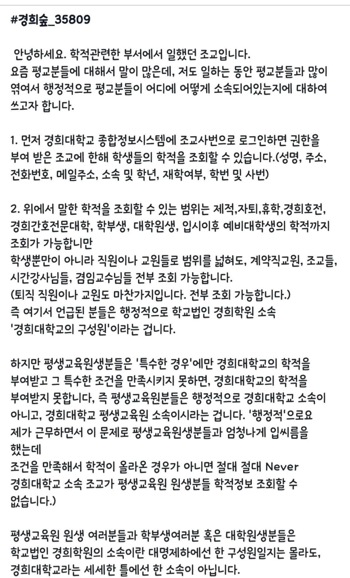 지금 논란은 <경희대학교>랑 <경희글로벌미래교육원> 사이 문제ㅇㅇ