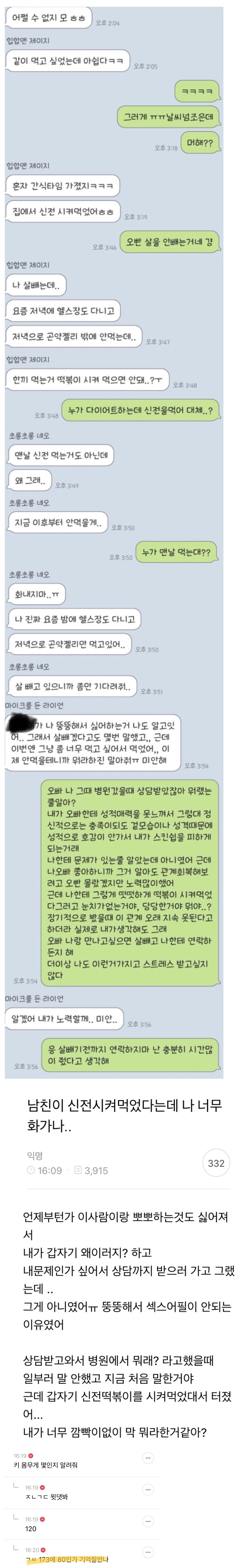 남친이 떡볶이 시켜먹은 게 너무 화가 남