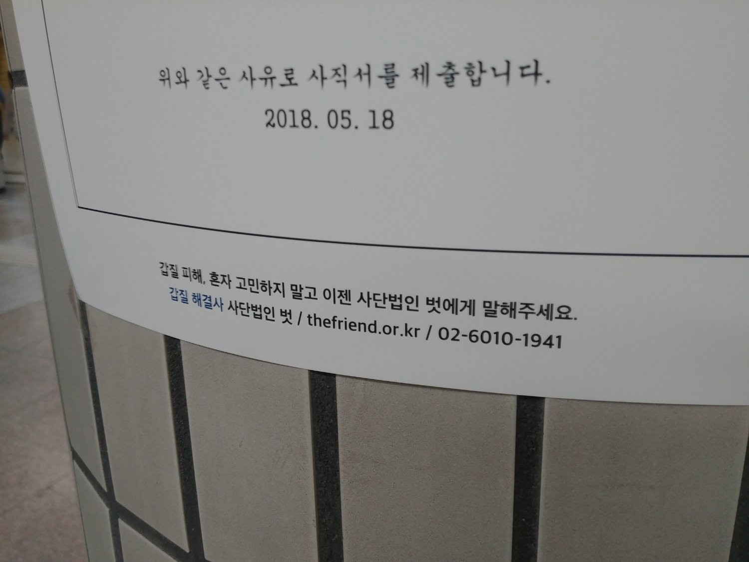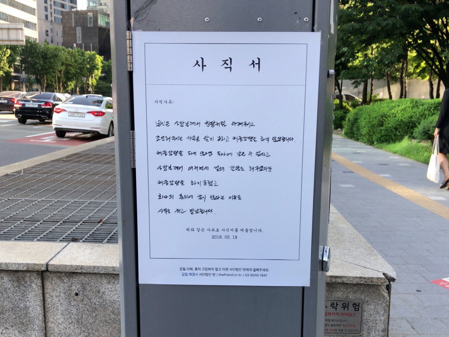 길거리에 붙은 사직서들.jpg
