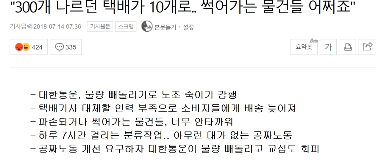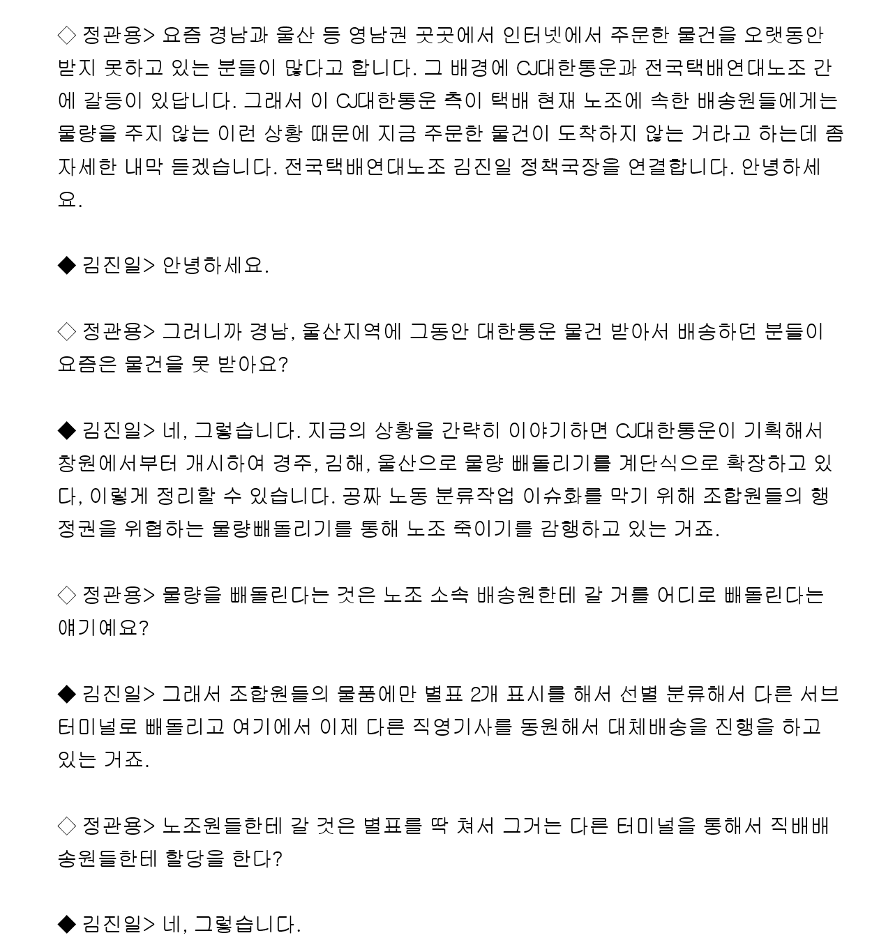 요즘 경남지역 택배상황