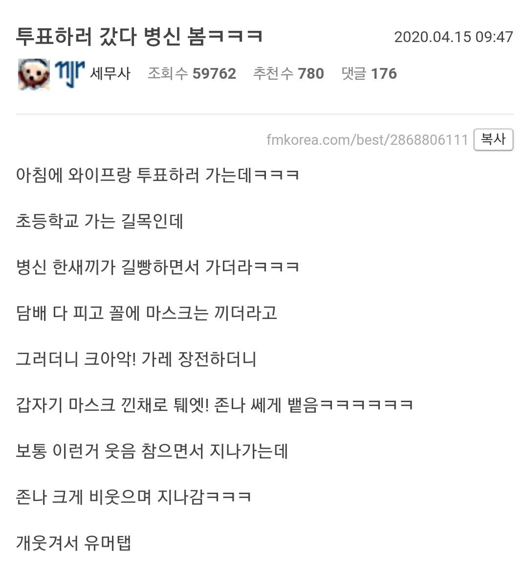 투표하러 갔다가 병신 봄
