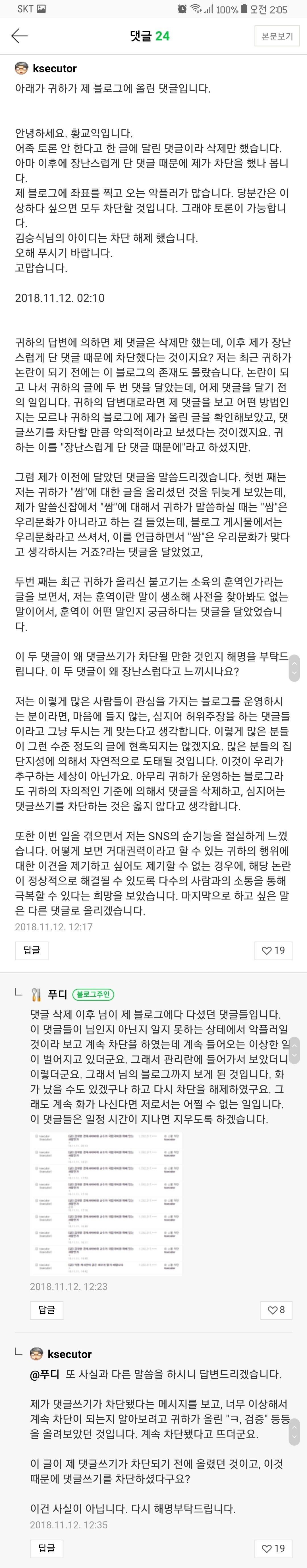황교익 패배 선언 + 차단 해제 후기.jpg