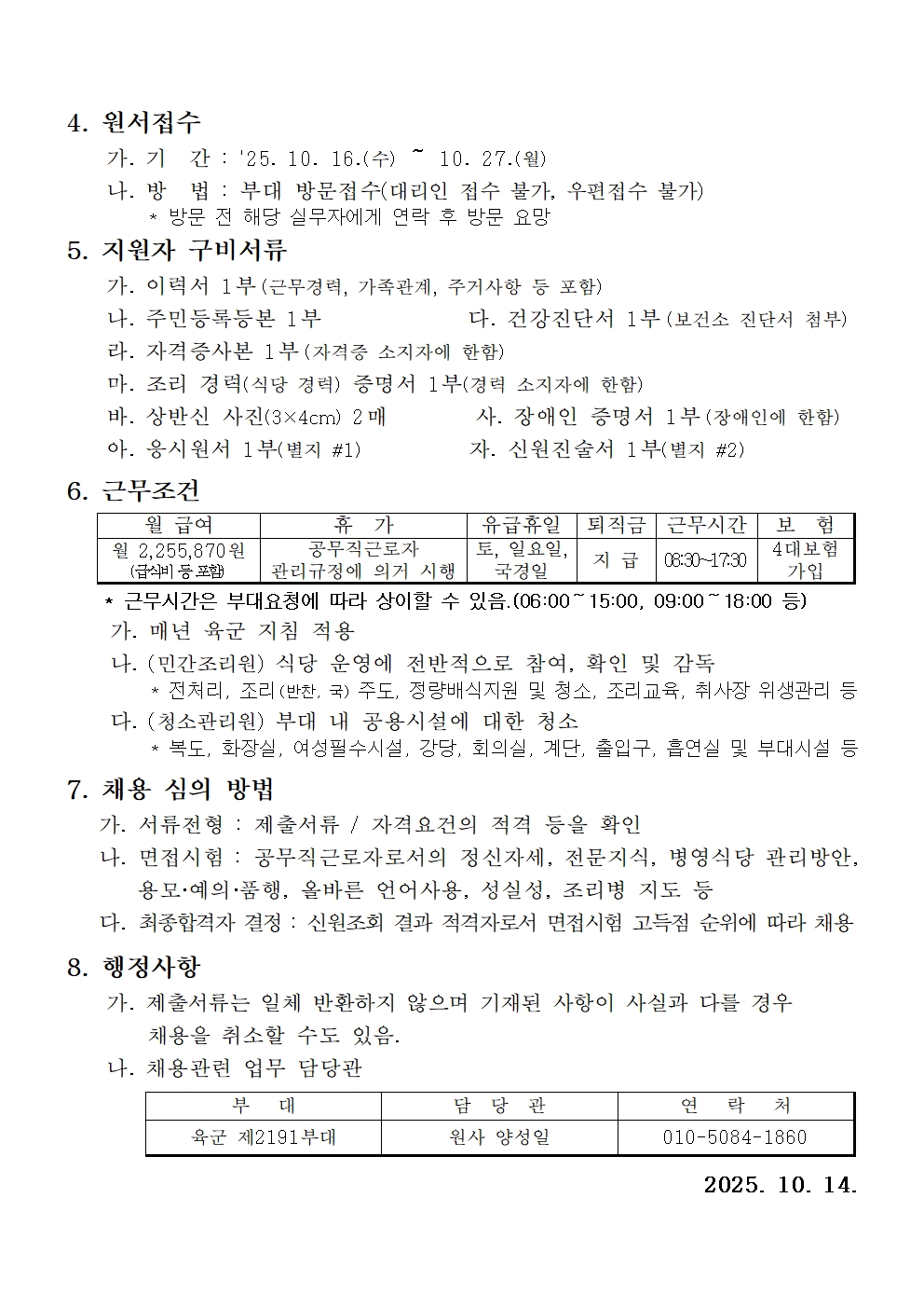 [동해시/구인] 민간조리 및 청소관리원 모집공고
