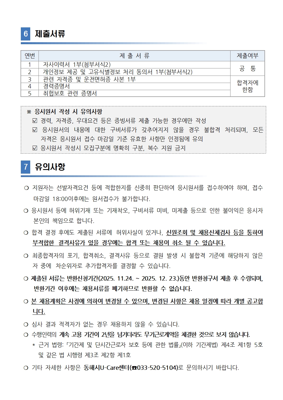 [동해시/구인] 수행인력(광역전담사회복지사_육아휴직대체) 공개채용 공고