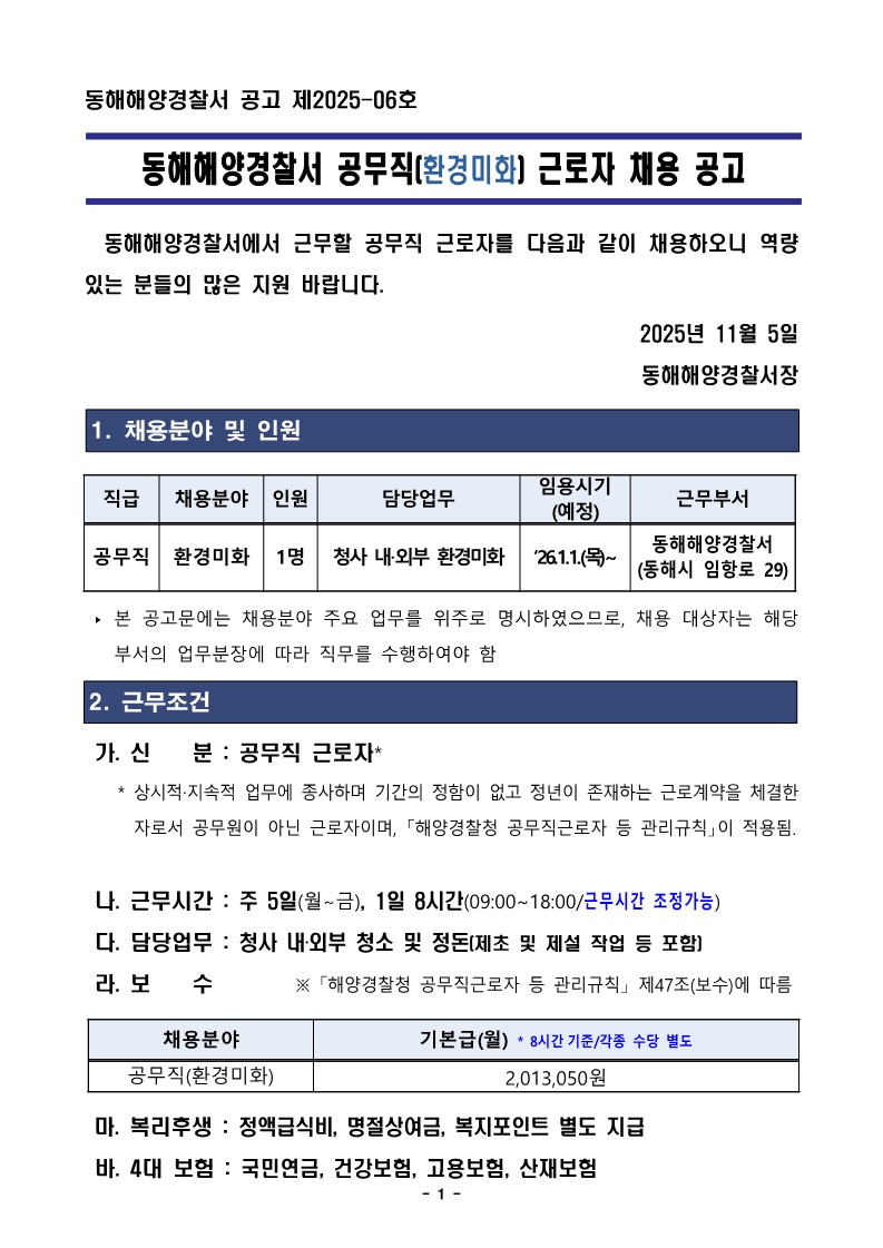 [동해시/구인] 공무직 근로자(환경미화) 채용 공고