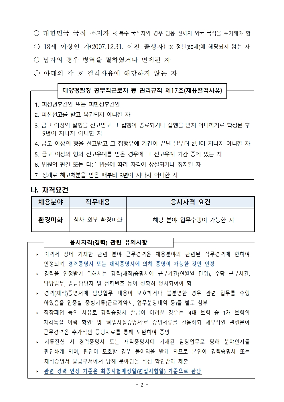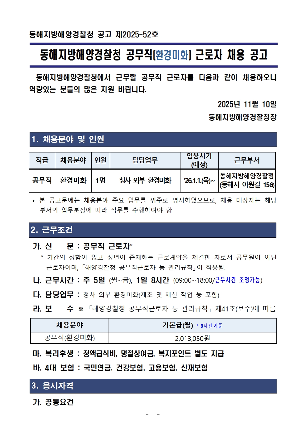 [동해시/구인] 공무직(환경미화) 근로자 채용 공고