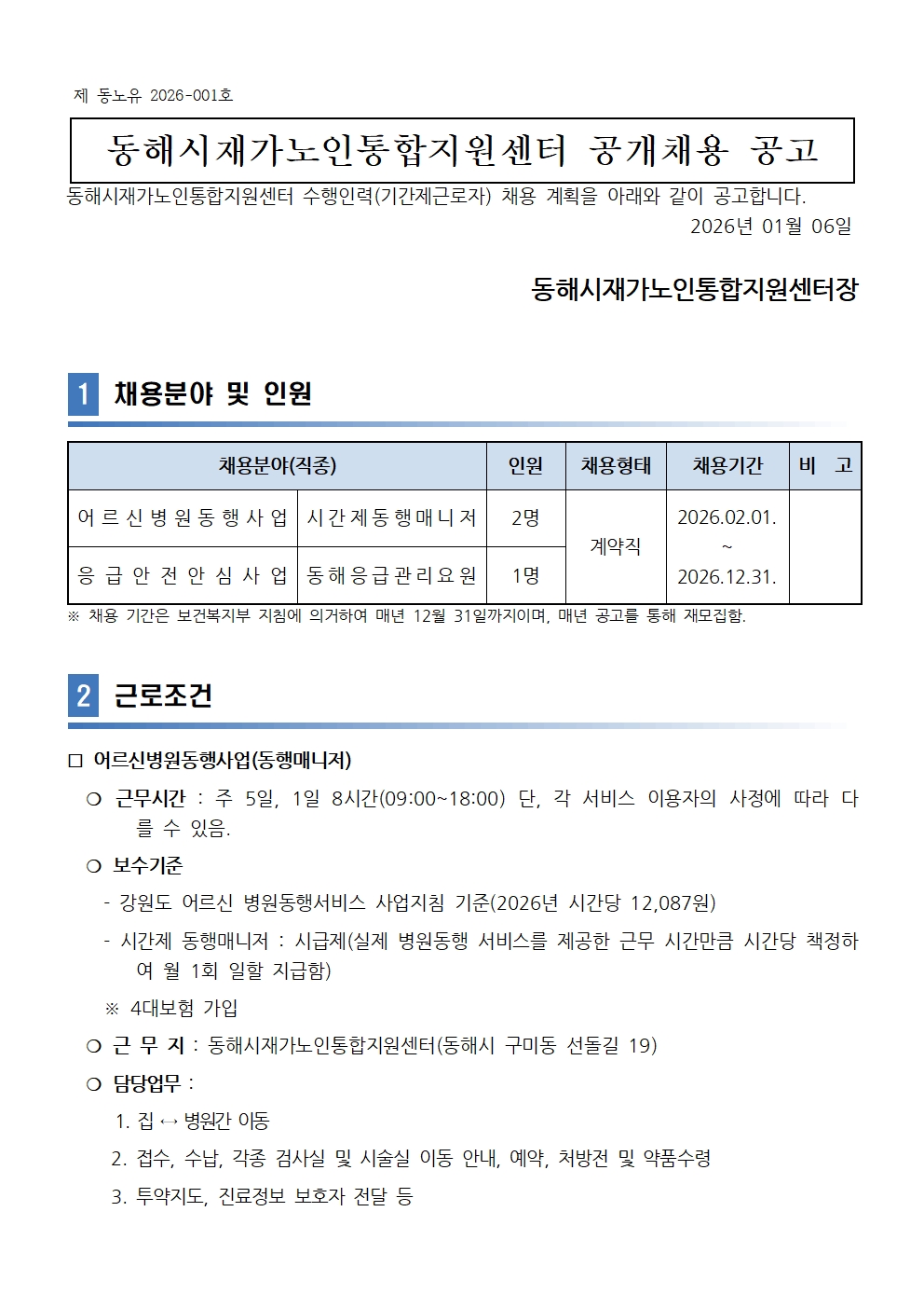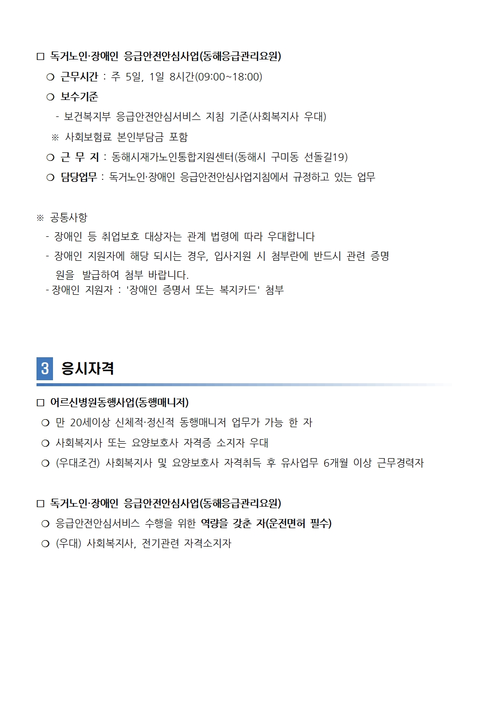 [동해시/구인] 공개채용(시간제동행매니저, 동해응급관리요원) 공고