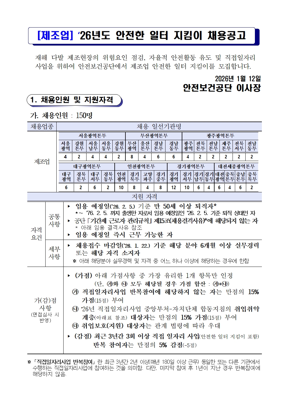 [동해시/구인] [제조업] ‘26년도 안전한 일터 지킴이 채용공고
