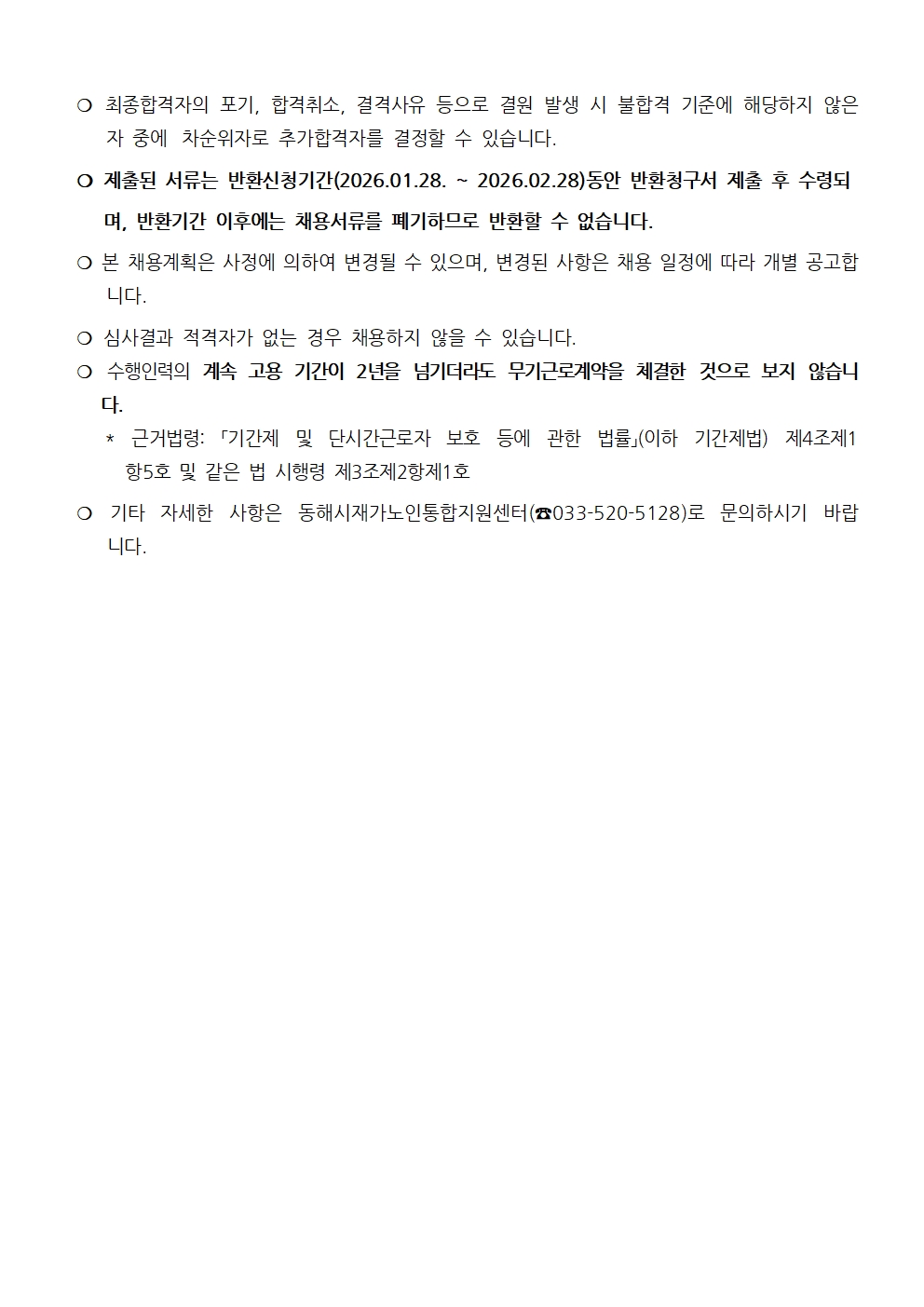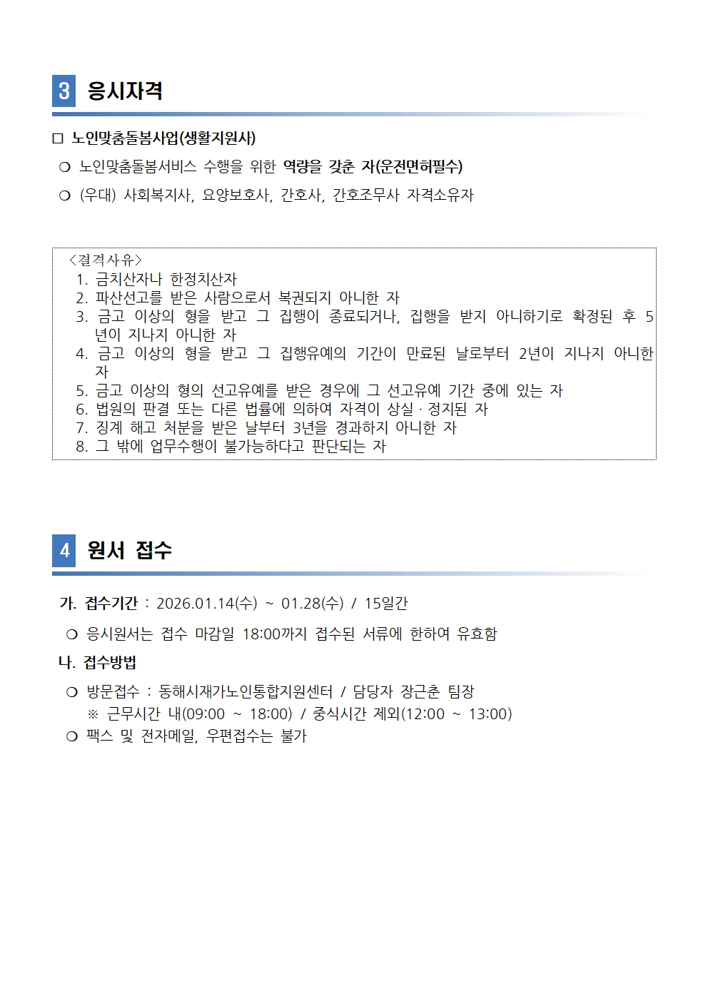[동해시/구인] < 동해시재가노인통합지원센터 > 공개채용(생활지원사) 공고