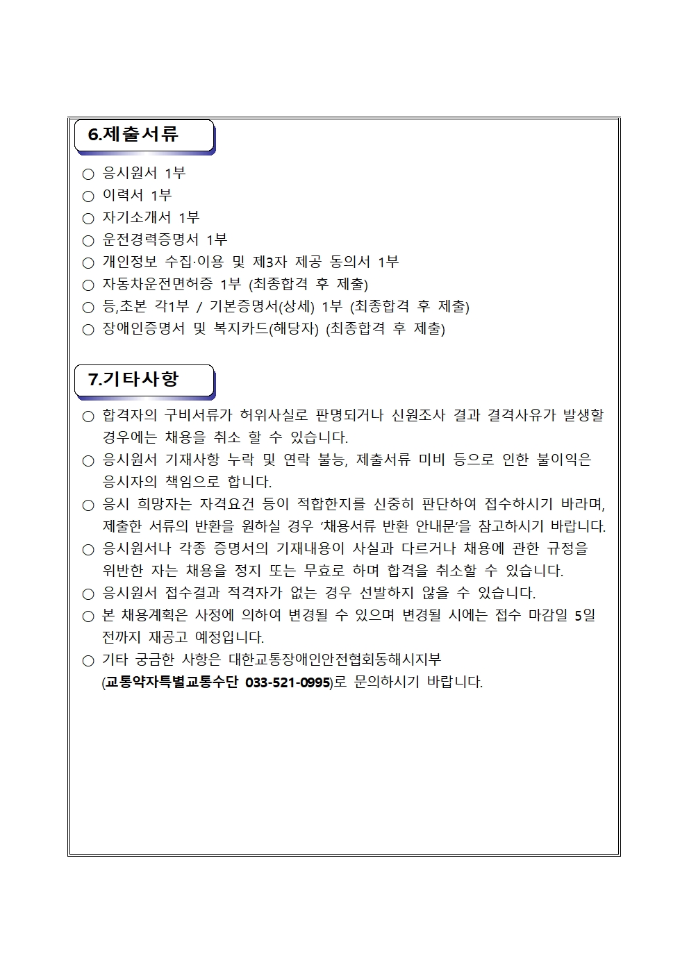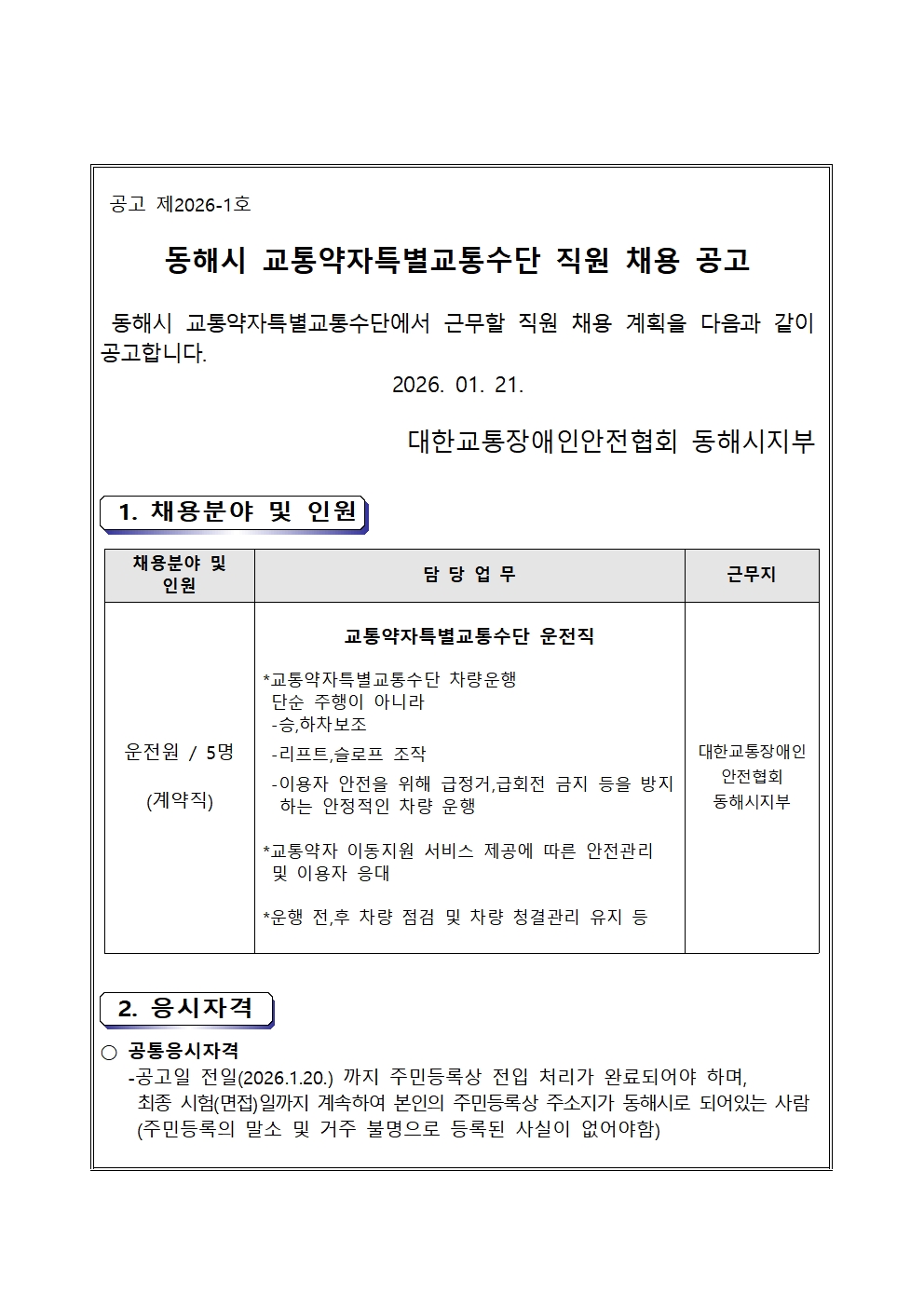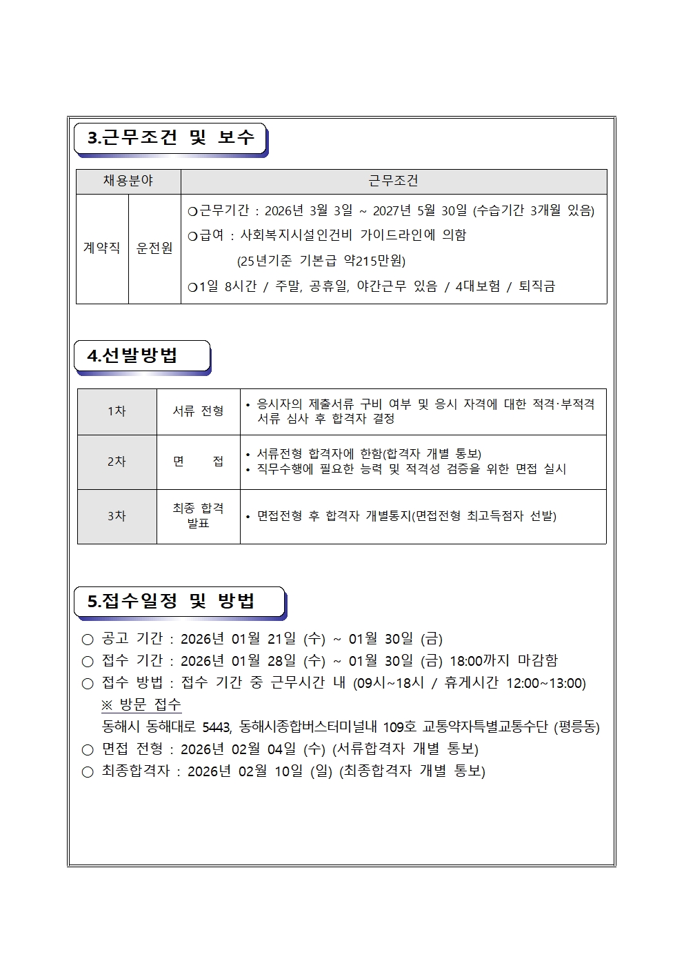 [동해시/구인] 동해시 교통약자특별교통수단 직원 채용 공고