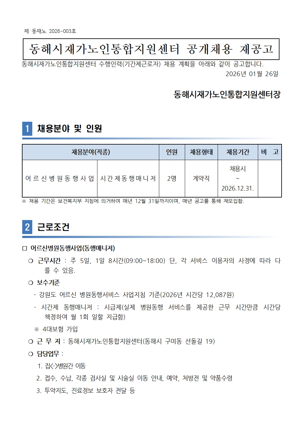 [동해시/구인] 공개채용(시간제동행매니저) 공고