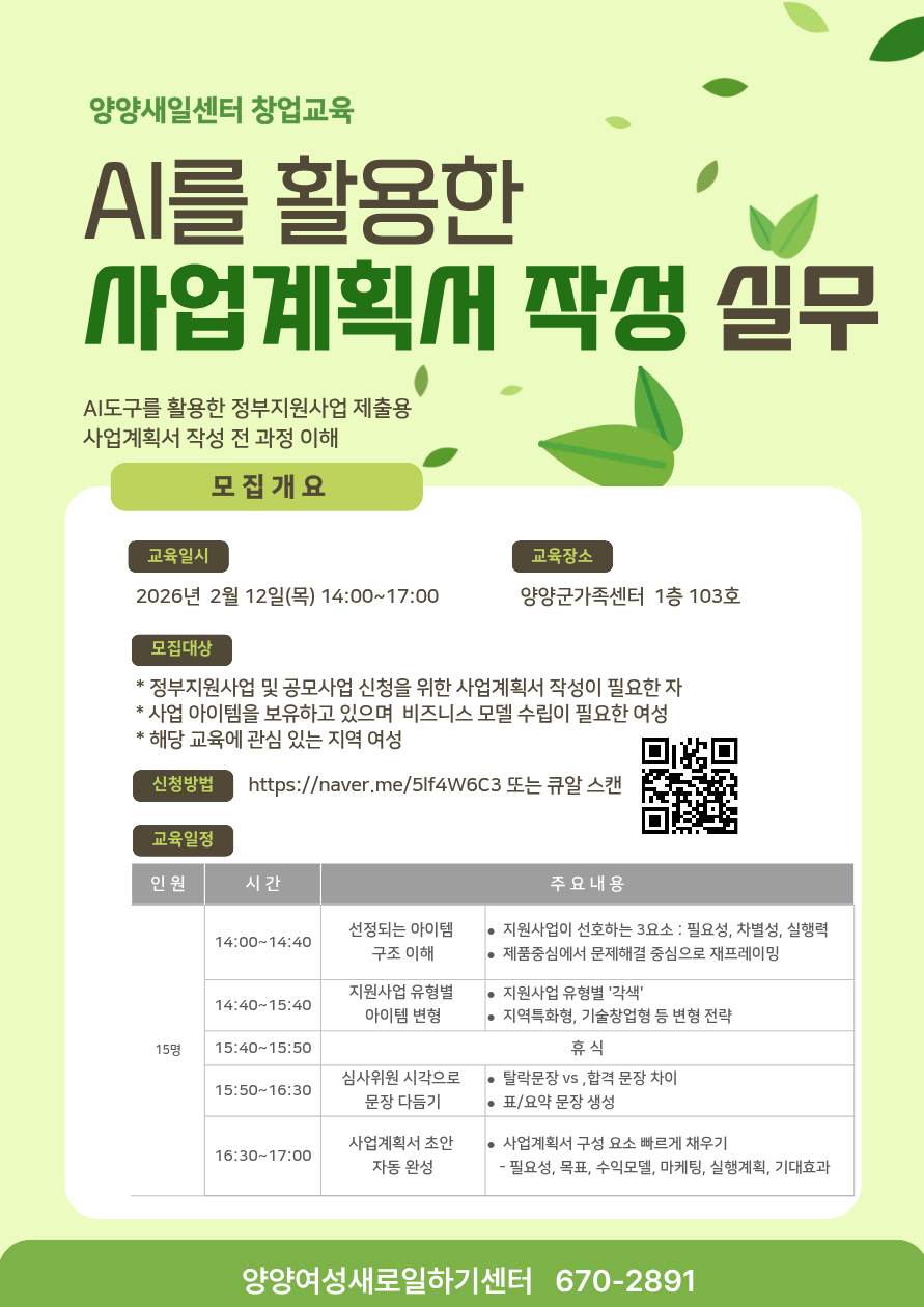 *문의사항 : 양양새일센터 xxx-xxxx