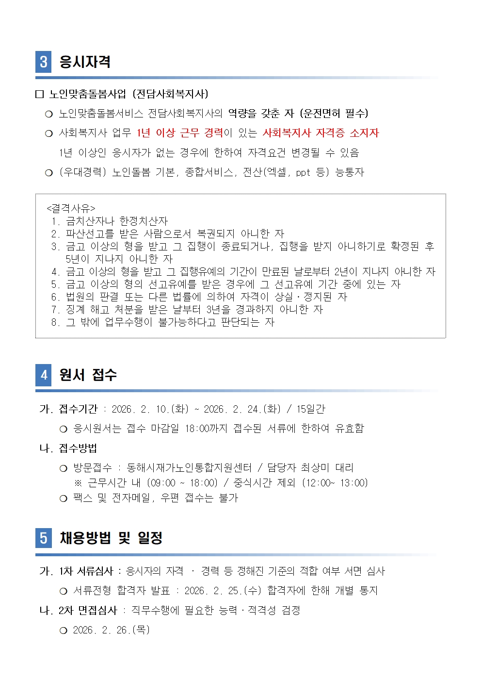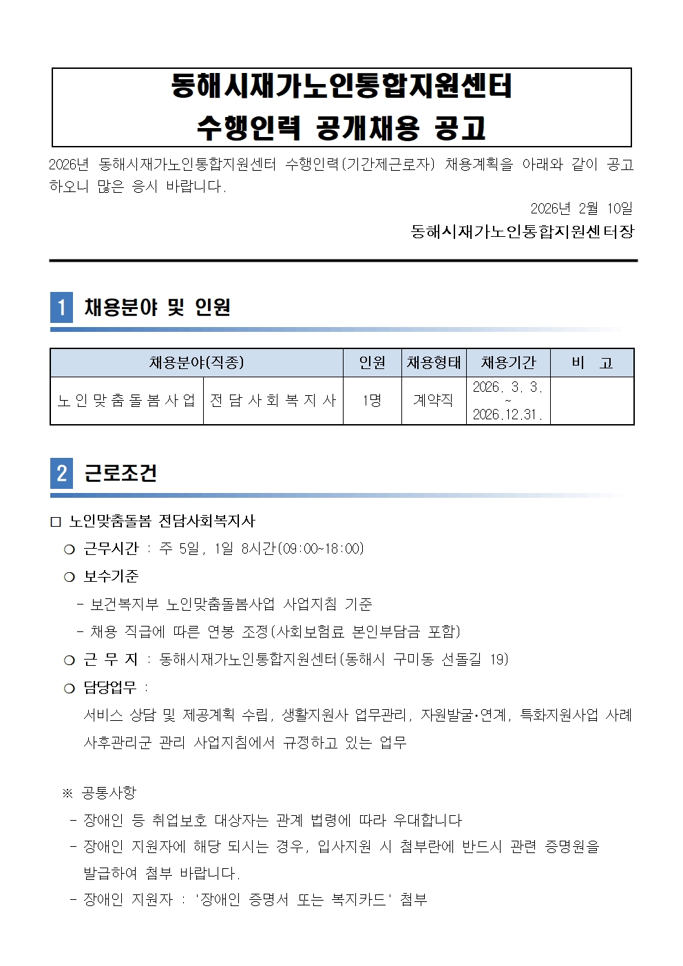 [동해시/구인] 수행인력(기간제근로자_전담사회복지사) 공개채용 공고