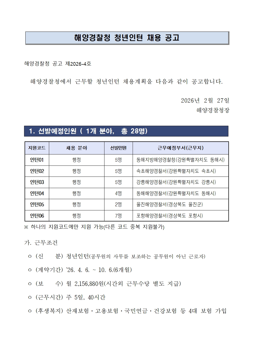 [동해시/구인] 청년인턴 채용 공고