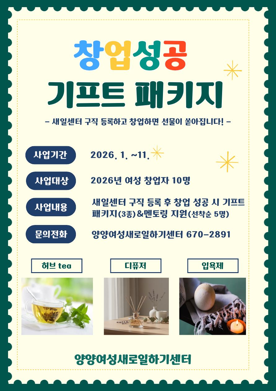 [양양군/구인] 양양새일센터 [창업 성공 기프트 패키지 사업] 대상자 모집