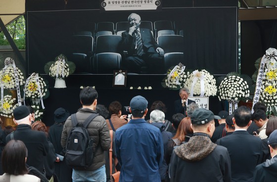 지난해 5월 7일 오전 서울 종로구 마로니에공원에서 고(故) 임영웅 연출가의 연극인장 영결식이 진행되고 있다. 연합뉴스