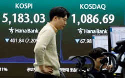 9일 서울 중구 하나은행 딜링룸 전광판에 코스피 등 시황이 표시되고 있다. 뉴스1 중동발 지정학 리스크가 한국 증시를 강타한 9일 코스피 시장에 거래를 20분간 중단하는 서킷 브레이커(주식매매 일시 정지)가 발동됐다. 한국거래소는 이날 오전 10시31분 52…