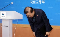 김윤덕 국토교통부 장관이 9일 정부세종청사 국토부 기자실에서 최근 무안공항 항공기 잔해물 추가 조사 과정에서 희생자들의 유해와 유류품이 추가로 발견된 것에 대해 사과하고 있다. 연합뉴스 김윤덕 국토교통부 장관이 9일 최근 12·29 제주항공 참사 희생자 유해와 유…