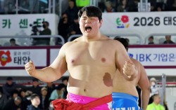 김민재가 설날장사씨름대회 백두급 2연패에 성공하며 통산 15번째 백두장사에 올랐다. 사진 대한씨름협회 ‘모래판 괴물’로 불리는 민속씨름 백두급 절대강자 김민재(영암군민속씨름단)가 설날장사씨름대회 백두급(140㎏ 이하)을 평…