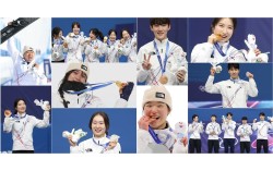 2026 밀라노·코르티나 동계올림픽에서 시상대에 올랐던 한국의 메달리스트. 왼쪽 줄부터 스노보드 남자 평행대회전 은메달 김상겸, 쇼트트랙 여자 1,000m 동메달 김길리, 쇼트트랙 여자 3,000m 계주 금메달 심석희, 이소연, 노도희, 김길리, 최민정, 스노보드 여자…