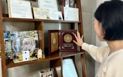 4월 22일 서울 서대문구 자택에서 고(故) 유재국 경위의 아내 이꽃님(38)씨가 유 경위의 초상이 새겨진 기념패를 어루만지고 있다. 한강경찰대 소속 유 경위는 지난 2020년 2월 한강 투신자를 수색하다 순직했다. 이아미 기자 잠수하기 전에 마지막으로 먹은 점심이 …
