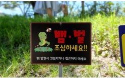 충남 계룡시의 한 공원에 벌과 뱀 조심을 알리는 표지판이 설치돼 있다. 중앙포토 여자고등학교에 약 2m 크기의 대형 뱀이 나타났다. 30일 전남소방본부와 여수소방서에 따르면 전날 오전 11시 57분쯤 전남 여수시 안산동의 한 여자고등학교 운동장에 뱀…