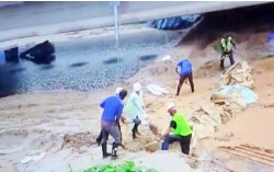 2023년 7월 15일 오송 참사 직전 임시제방 보강공사 모습. 연합뉴스 현장서 유서 발견…사망 원인 조사 중 2년 전 충북 청주시 오송읍에서 발생한 ‘궁평2 지하차도 침수 사고’를 유발한 책임으로 기소돼 실형을 선고받은 미호천교 확장공사 감리단장이 교도소…