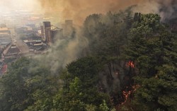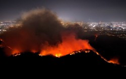 28일 대구 북구 함지산에서 발생한 산불이 야간에도 꺼지지 않고 주택가 방향으로 번지고 있다. 이날 소방청은 국가소방동원령을 발령했다. [뉴시스] “경북에 산불이 났을 때 순식간에 안동에서 영덕까지 불길이 갔다고 해서 이번에도 간밤에 어떻게 될지 몰라 우…