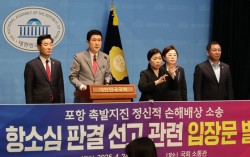 지난 24일 이강덕 포항시장이 포항지진 항소심 관련 입장문을 발표하고 있다. [사진 포항시] 경북 포항 촉발지진 피해 위자료 청구소송의 항소심 선고가 다음 달 이뤄지는 가운데 최대 1조5000억원에 달할 것으로 보이는 정부 배상금 규모에 관심이 쏠리고 있…