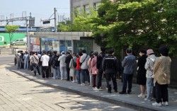 28일 오전 10시30분 노량진역 인근 SK텔레콤 직영점에 시민들이 유심(USIM) 교체를 위해 대기하고 있다. 약 170여명이 대기한 줄은 인근 골목까지 이어졌다. 박종서 기자 28일 오전 10시쯤 서울 동작구 노량진역 인근 SK텔레콤(SKT) 직영점 앞엔 17…