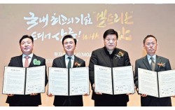 충청남도 중앙투자심사서 타당성 인정받아 고효율 공조기술 갖춘 친환경 농장 셀트리온 3000억원 등 투자 잇달아 최재구 예산군수, 김태흠 충남도지사, 서정진 셀트리온그룹 회장, 김병곤 충남개발공사 사장(왼쪽부터)이 2월 27일 충남 예산군청에서 내포 농생명 융복합산업…